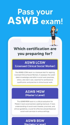 Our test prep application includes study materials for the following certifications: ASWB LCSW (Licensed Clinical Social Worker), ASWB MSW (Master’s Level), ASWB BSW (Bachelor’s Level), and ASWB Advanced Generalists. Each certification has its own section of study materials to ensure you are always reviewing the most relevant content for your target certification.